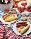 pre-marinated pork, pre-seasoned burgers and deli style hot dogs